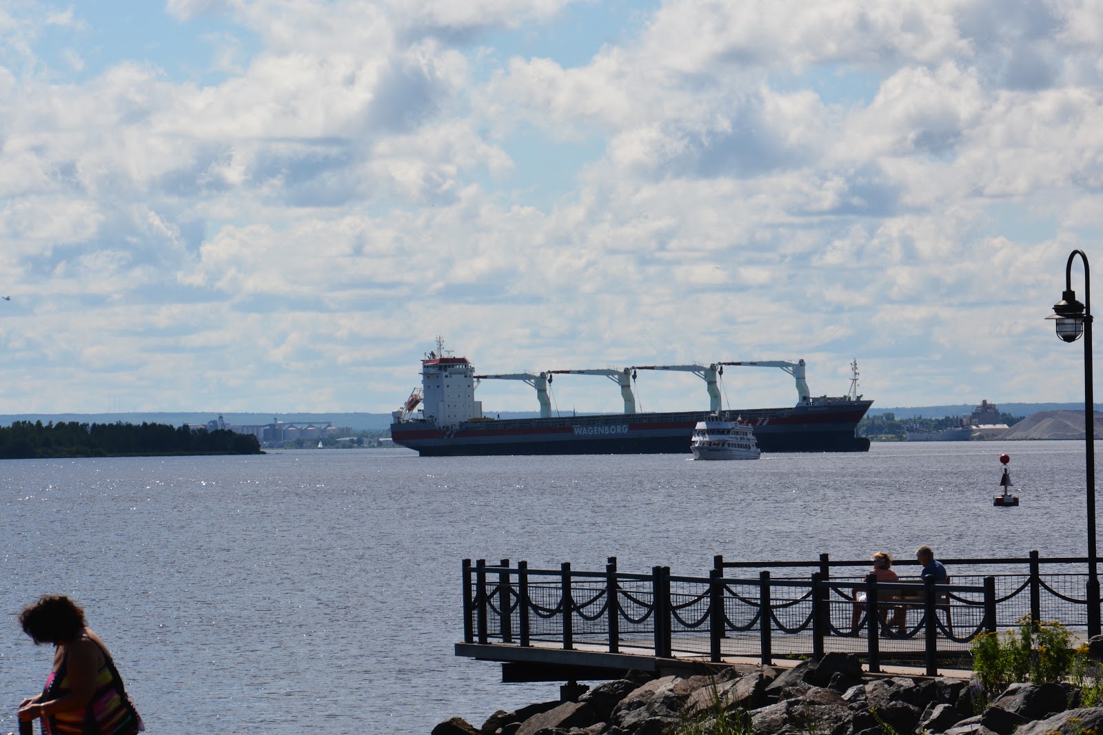 | This ocean going freighter has in harbor at anchor yesterday. |